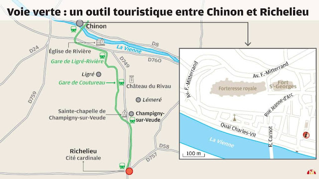 The town has now developed the old trackways to be a easy cycle way to connect the town with Chinon, a neighbour with a strong touristic and historic character that compliments that of Richelieu itself. While the tracks have been removed and the cycle way laid out, we have all waited to see what is proposed for the few stations along the line.